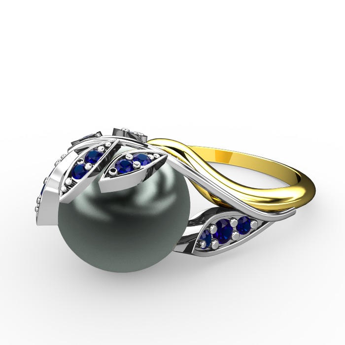 Siyah inci ve lab safir 14 ayar beyaz altın yüzük