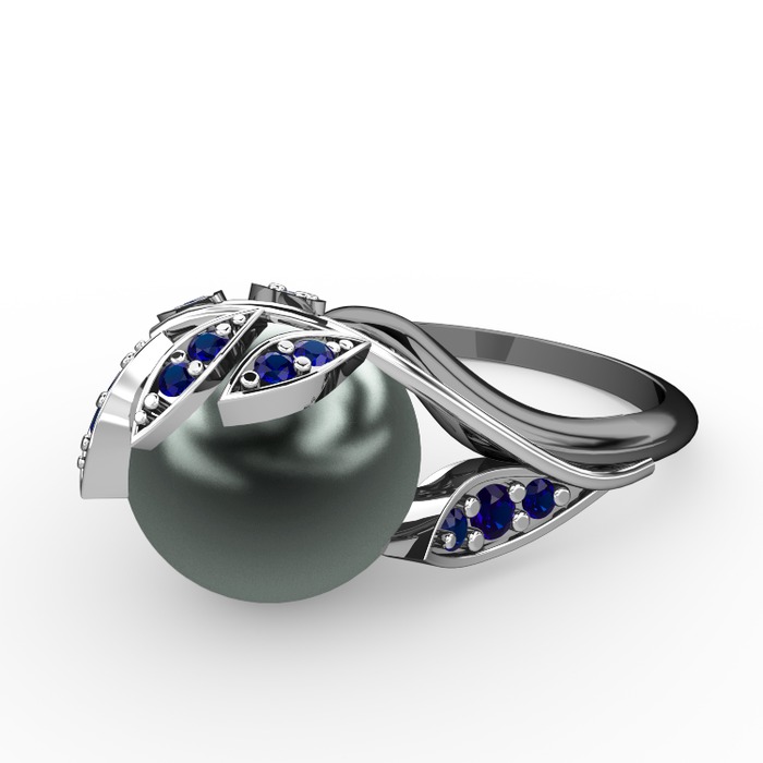 Siyah inci ve lab safir 14 ayar beyaz altın yüzük