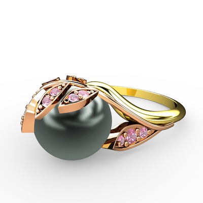 Siyah inci ve pembe kuvars 8 ayar rose altın yüzük