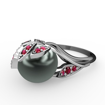Siyah inci ve rodolit garnet 18 ayar beyaz altın yüzük