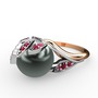 Siyah inci ve rodolit garnet 18 ayar beyaz altın yüzük