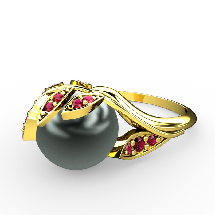Siyah inci ve rodolit garnet 8 ayar altın yüzük