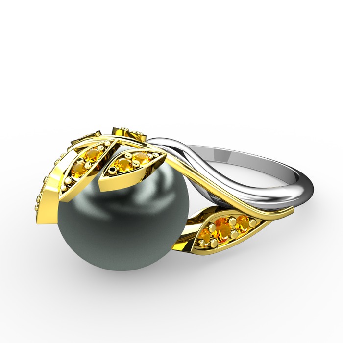 Siyah inci ve sitrin 14 ayar altın yüzük