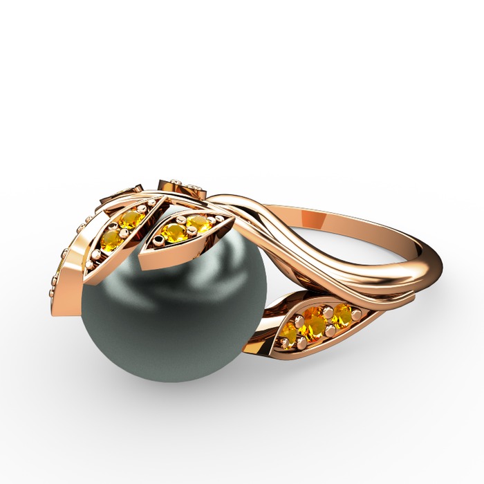 Siyah inci ve sitrin 14 ayar rose altın yüzük