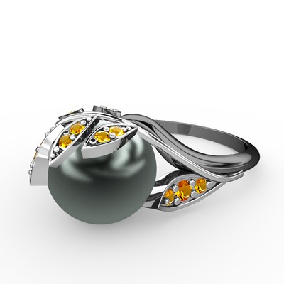 Siyah inci ve sitrin 925 ayar gümüş yüzük
