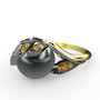 Siyah inci ve sitrin 925 ayar siyah rodyum kaplama gümüş yüzük