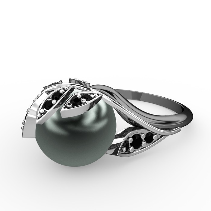 Siyah inci ve siyah zirkon 18 ayar beyaz altın yüzük