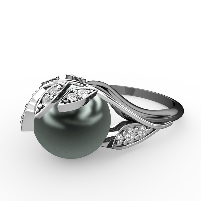 Siyah inci ve swarovski 14 ayar beyaz altın yüzük