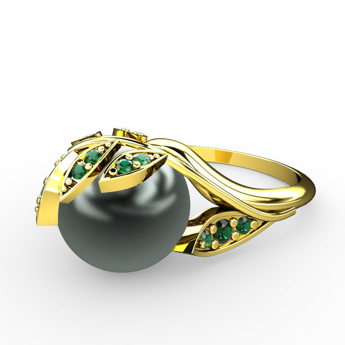 Siyah inci ve yeşil kuvars 14 ayar altın yüzük