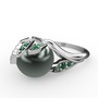 Siyah inci ve yeşil kuvars 18 ayar beyaz altın yüzük