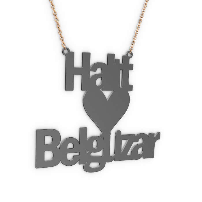 925 ayar siyah rodyum kaplama gümüş kolye (13 karakterli arial, 40 cm gümüş rolo zincir)