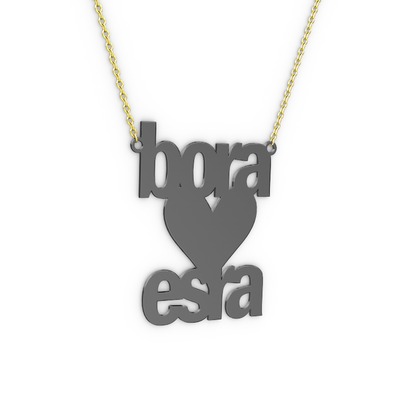 925 ayar siyah rodyum kaplama gümüş kolye (8 karakterli arial, 40 cm altın rolo zincir)