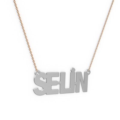 14 ayar beyaz altın kolye (5 karakterli arial, 40 cm rose altın rolo zincir)