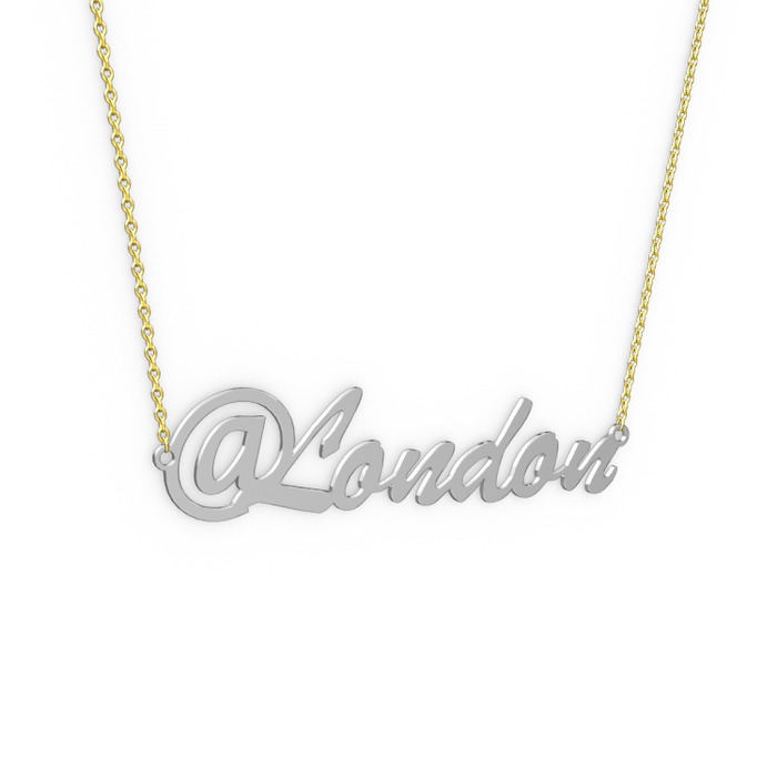 14 ayar beyaz altın kolye (6 karakterli el yazısı, 40 cm altın rolo zincir)