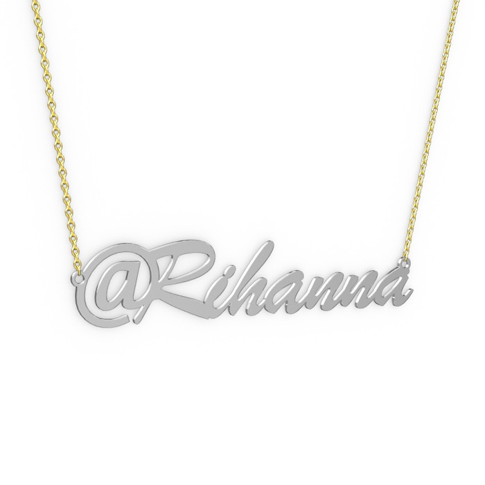 14 ayar beyaz altın kolye (7 karakterli el yazısı, 40 cm altın rolo zincir)