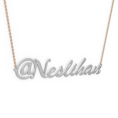 14 ayar beyaz altın kolye (8 karakterli el yazısı, 40 cm rose altın rolo zincir)
