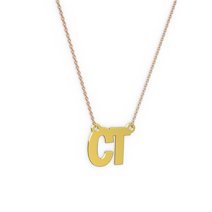 18 ayar altın kolye (2 karakterli arial, 40 cm gümüş rolo zincir)