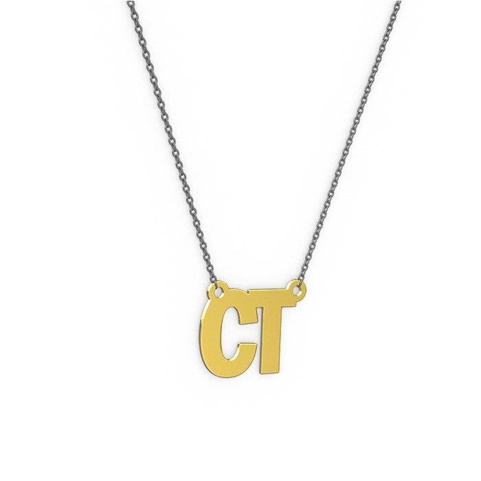 18 ayar altın kolye (2 karakterli arial, 40 cm gümüş rolo zincir)