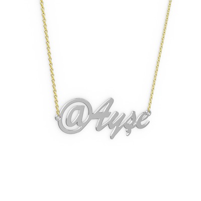 18 ayar beyaz altın kolye (4 karakterli el yazısı, 40 cm altın rolo zincir)