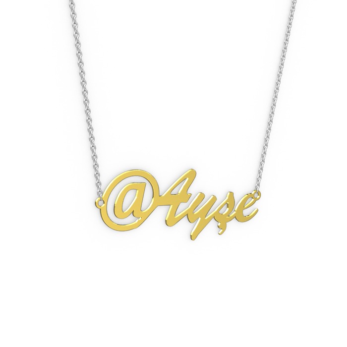 8 ayar altın kolye (4 karakterli el yazısı, 40 cm beyaz altın rolo zincir)