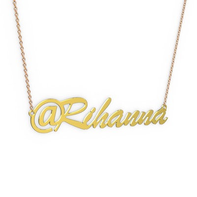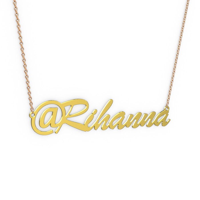 8 ayar altın kolye (7 karakterli el yazısı, 40 cm gümüş rolo zincir)