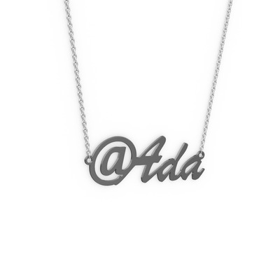 925 ayar siyah rodyum kaplama gümüş kolye (3 karakterli el yazısı, 40 cm beyaz altın rolo zincir)