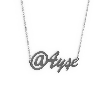 925 ayar siyah rodyum kaplama gümüş kolye (4 karakterli el yazısı, 40 cm beyaz altın rolo zincir)