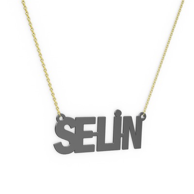925 ayar siyah rodyum kaplama gümüş kolye (5 karakterli arial, 40 cm altın rolo zincir)