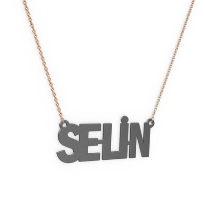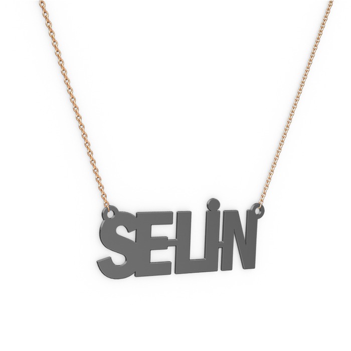 925 ayar siyah rodyum kaplama gümüş kolye (5 karakterli arial, 40 cm rose altın rolo zincir)
