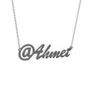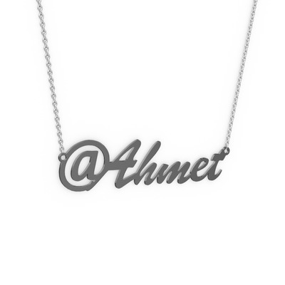 925 ayar siyah rodyum kaplama gümüş kolye (5 karakterli el yazısı, 40 cm beyaz altın rolo zincir)