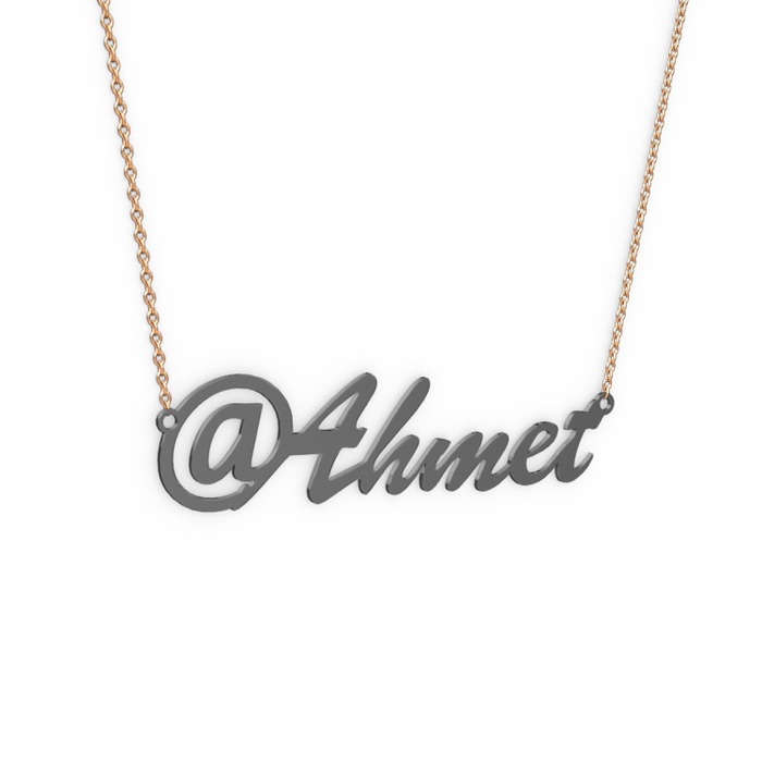 925 ayar siyah rodyum kaplama gümüş kolye (5 karakterli el yazısı, 40 cm rose altın rolo zincir)