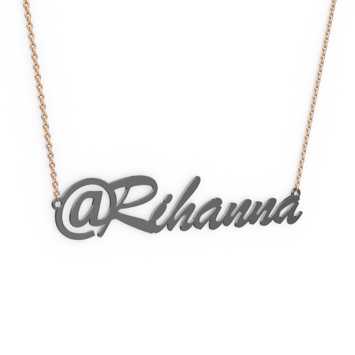 925 ayar siyah rodyum kaplama gümüş kolye (7 karakterli el yazısı, 40 cm gümüş rolo zincir)
