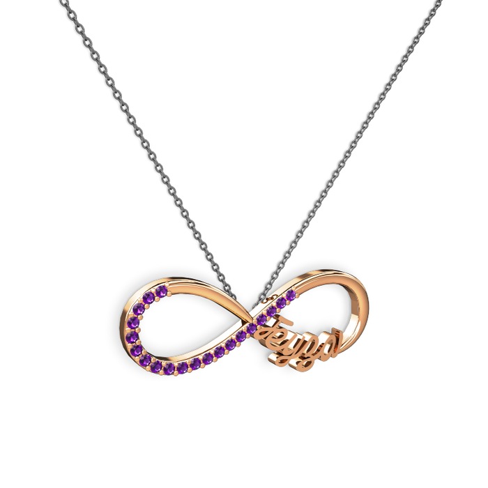 Ametist 14 ayar rose altın kolye (40 cm gümüş rolo zincir)