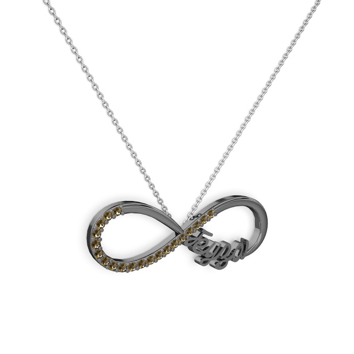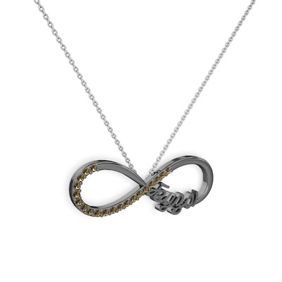 Dumanlı kuvars 925 ayar siyah rodyum kaplama gümüş kolye (40 cm beyaz altın rolo zincir)