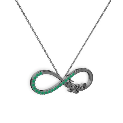İsimli Sonsuzluk kolye - Kök zümrüt 925 ayar siyah rodyum kaplama gümüş kolye (40 cm gümüş rolo zincir)