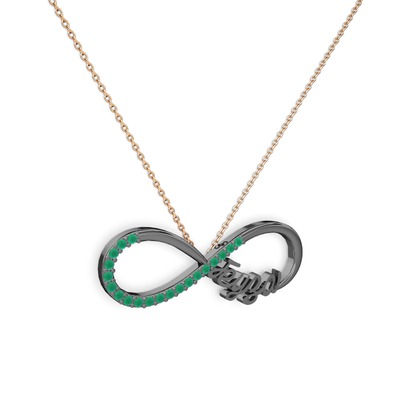 Kök zümrüt 925 ayar siyah rodyum kaplama gümüş kolye (40 cm rose altın rolo zincir)