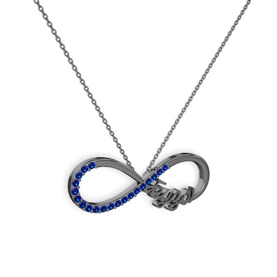 Lab safir 925 ayar siyah rodyum kaplama gümüş kolye (40 cm gümüş rolo zincir)