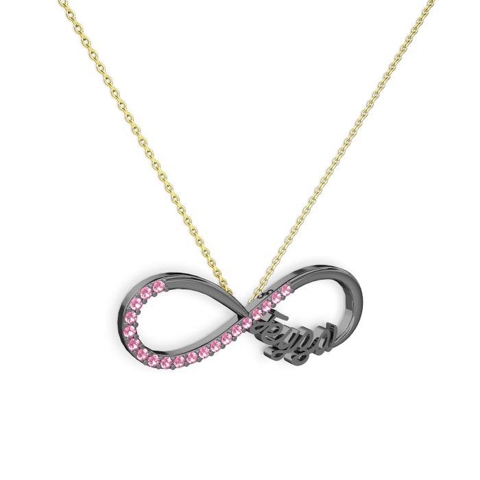 Pembe kuvars 925 ayar siyah rodyum kaplama gümüş kolye (40 cm altın rolo zincir)