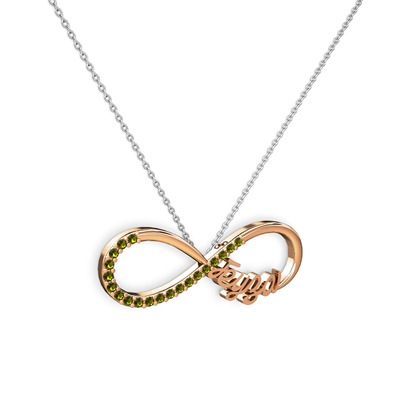 Peridot 925 ayar rose altın kaplama gümüş kolye (40 cm beyaz altın rolo zincir)