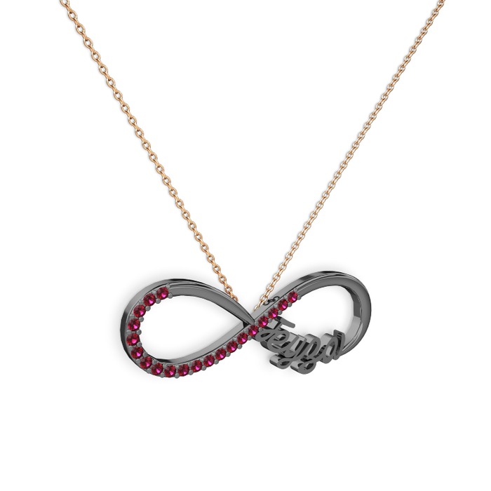 Rodolit garnet 925 ayar siyah rodyum kaplama gümüş kolye (40 cm rose altın rolo zincir)