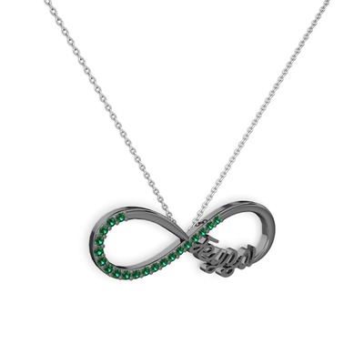 Yeşil kuvars 925 ayar siyah rodyum kaplama gümüş kolye (40 cm beyaz altın rolo zincir)