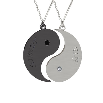 İsimli Yin Yang - Siyah zirkon ve pırlanta 925 ayar siyah rodyum kaplama gümüş kolye (0.06 karat, 40 cm beyaz altın rolo zincir)