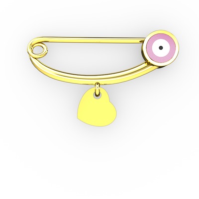 8 ayar altın nazar iğnesi (Pastel pembe mineli)