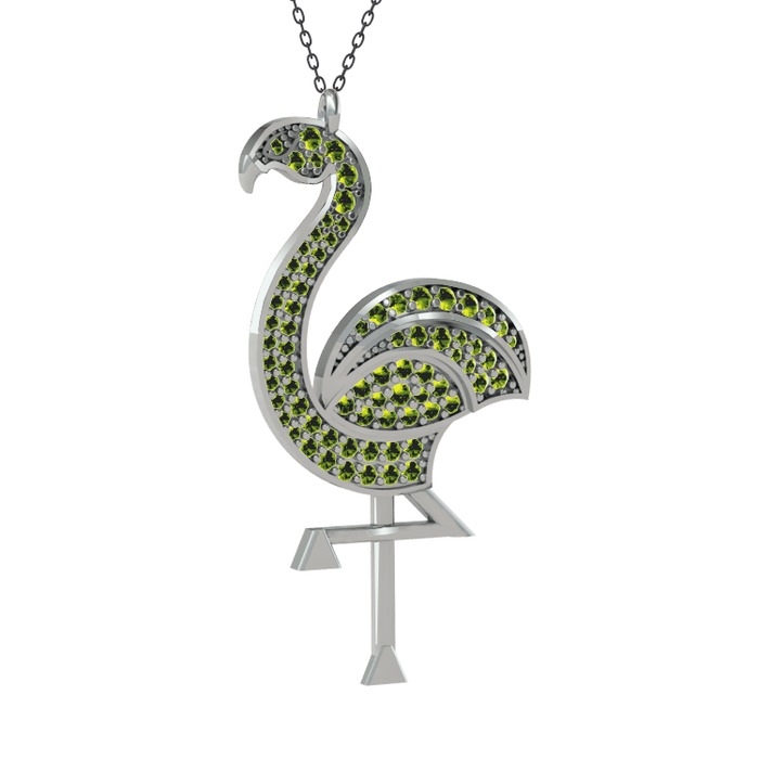 Peridot 14 ayar beyaz altın kolye (40 cm gümüş rolo zincir)