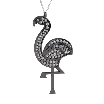 Swarovski 925 ayar siyah rodyum kaplama gümüş kolye (40 cm gümüş rolo zincir)