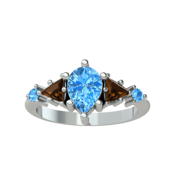 Akuamarin ve dumanlı kuvars 925 ayar gümüş yüzük
