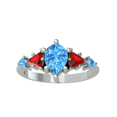 Akuamarin ve garnet 14 ayar beyaz altın yüzük