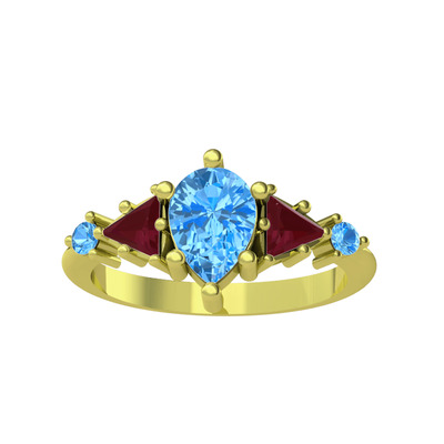 Akuamarin ve kök yakut 18 ayar altın yüzük