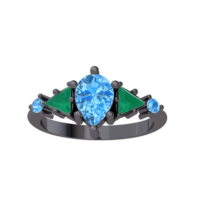 Akuamarin ve kök zümrüt 925 ayar siyah rodyum kaplama gümüş yüzük