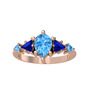 Akuamarin ve lab safir 8 ayar rose altın yüzük